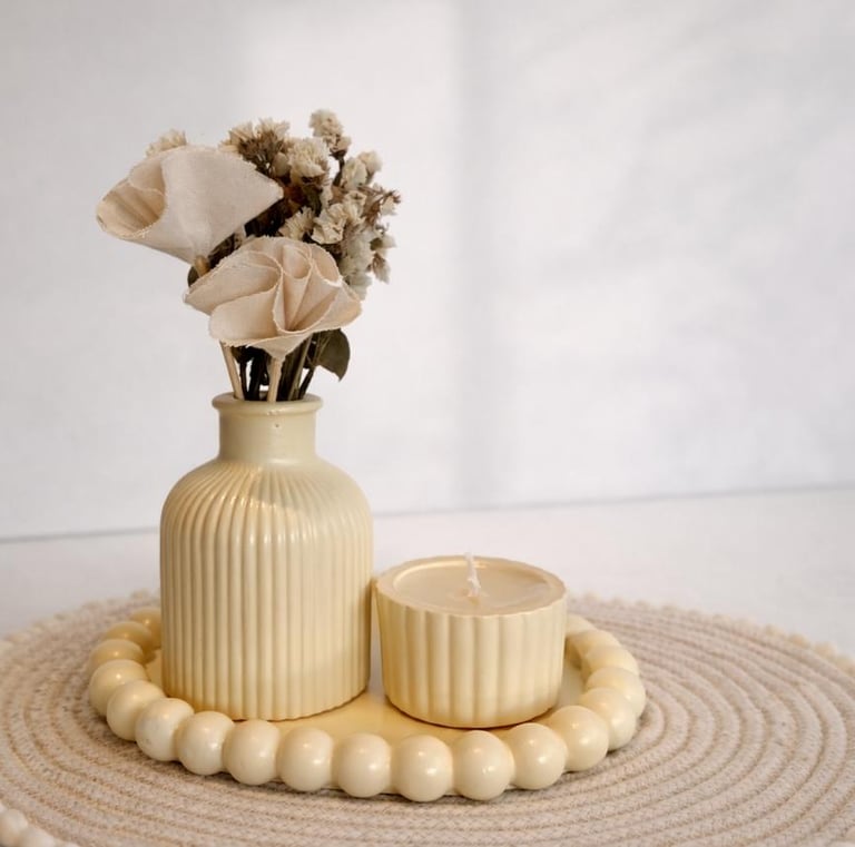 Cada vela de soja en Tinna Candles es creada a mano, cuidando cada detalle para aportar calidez y elegancia a tus eventos especiales.